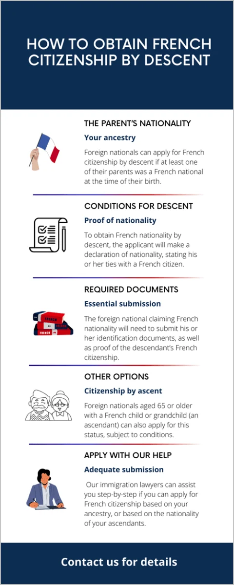 If you have questions about French citizenship by birth, or citizenship by descent, do not hesitate to reach out to us. You can also explore this video presentation made by our specialists on this topic: